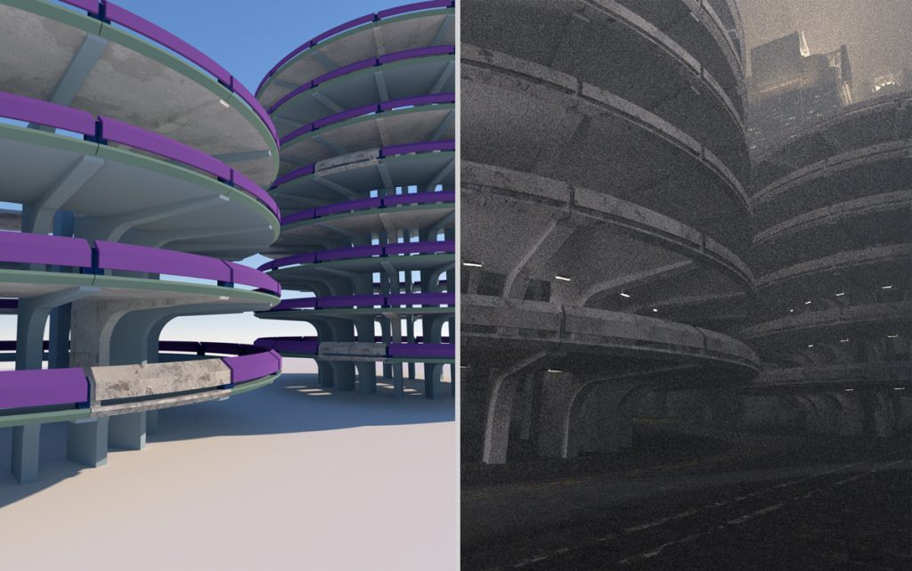 < Strays | nico.n | post-apocalyptic brutalist architecture in 3D